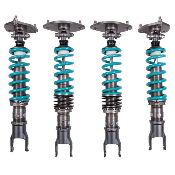 R1 Coilovers are very lightweight, using monotube dampers in aluminium bodies. This keeps unsprung mass to a minimum and reduces the effects of heat from the braking system affecting damping consistancy. All parts have an anodised and titanium finished for all weather protection.